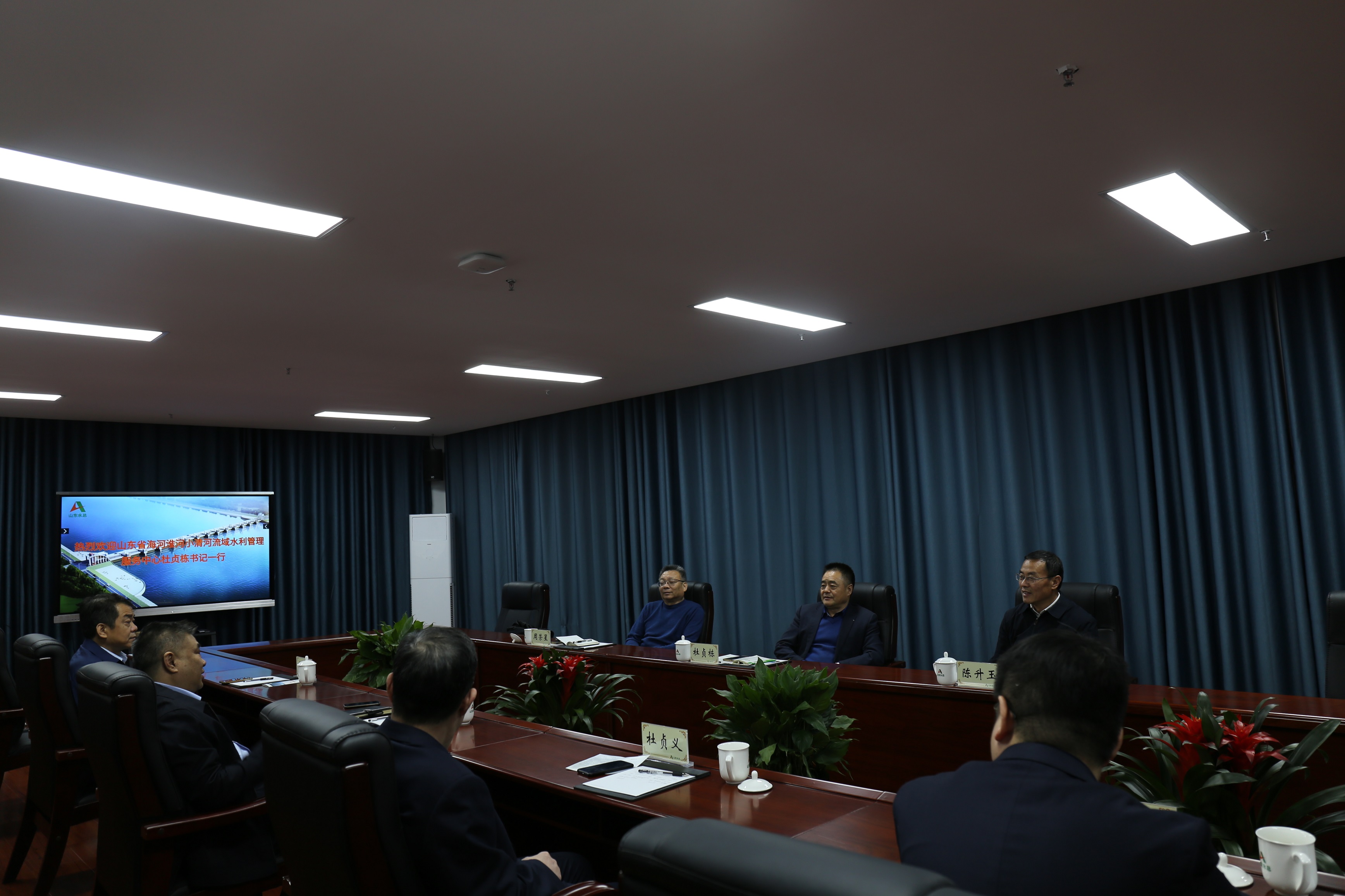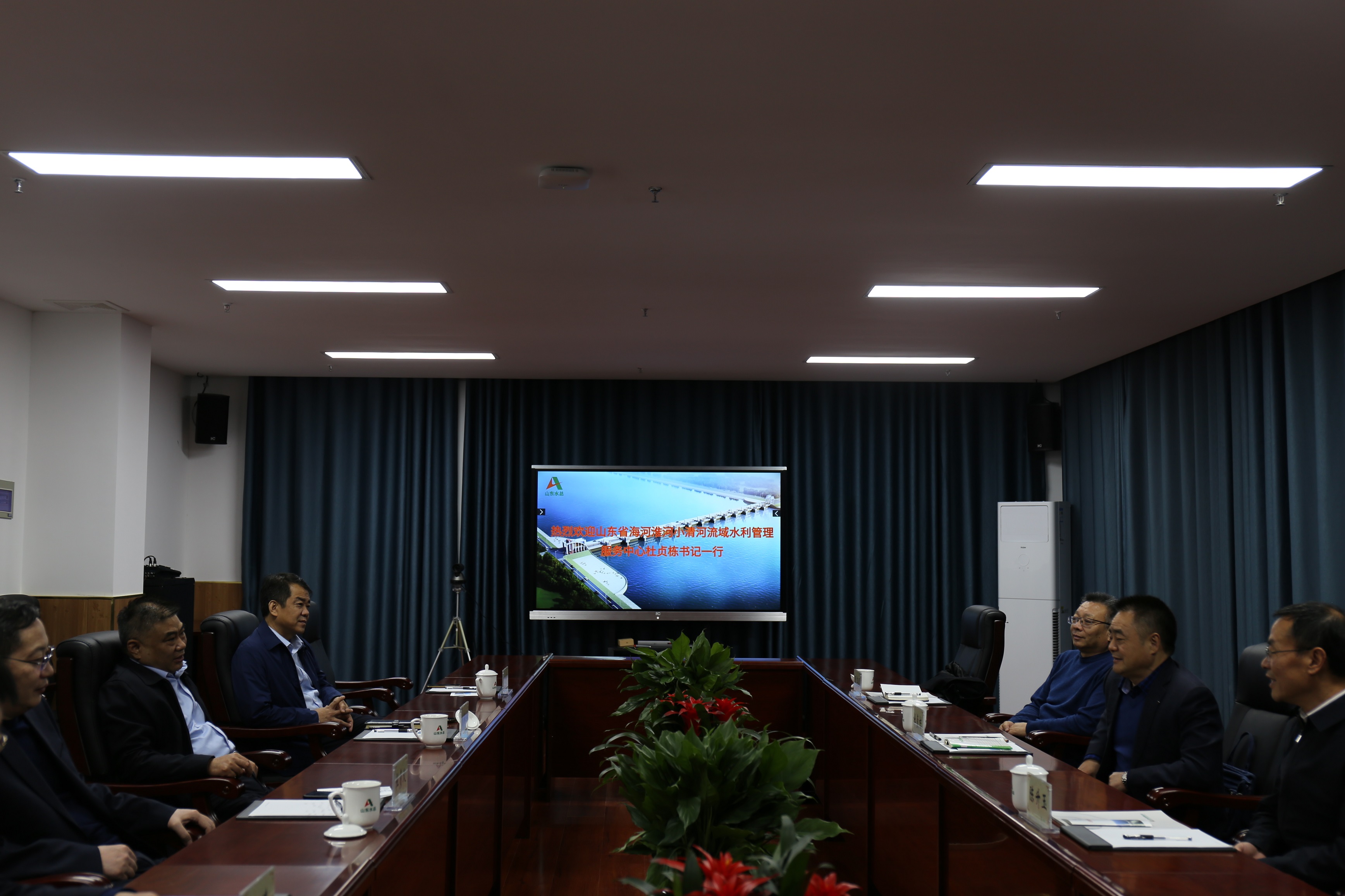 12月1日,山东省海河淮河小清河流域水利管理服务中心主任杜贞栋、山东省水利厅发展规划处处长陈升玉、山东省海河淮河小清河流域水利管理服务中心总工程师周荣星一行来到我环亚官方网站座谈交流。环亚官方网站党委书记、董事长刘深远,党委委员、副总经理李光市、杜贞义出席交流会议。投资经营部相关人员参加会议。