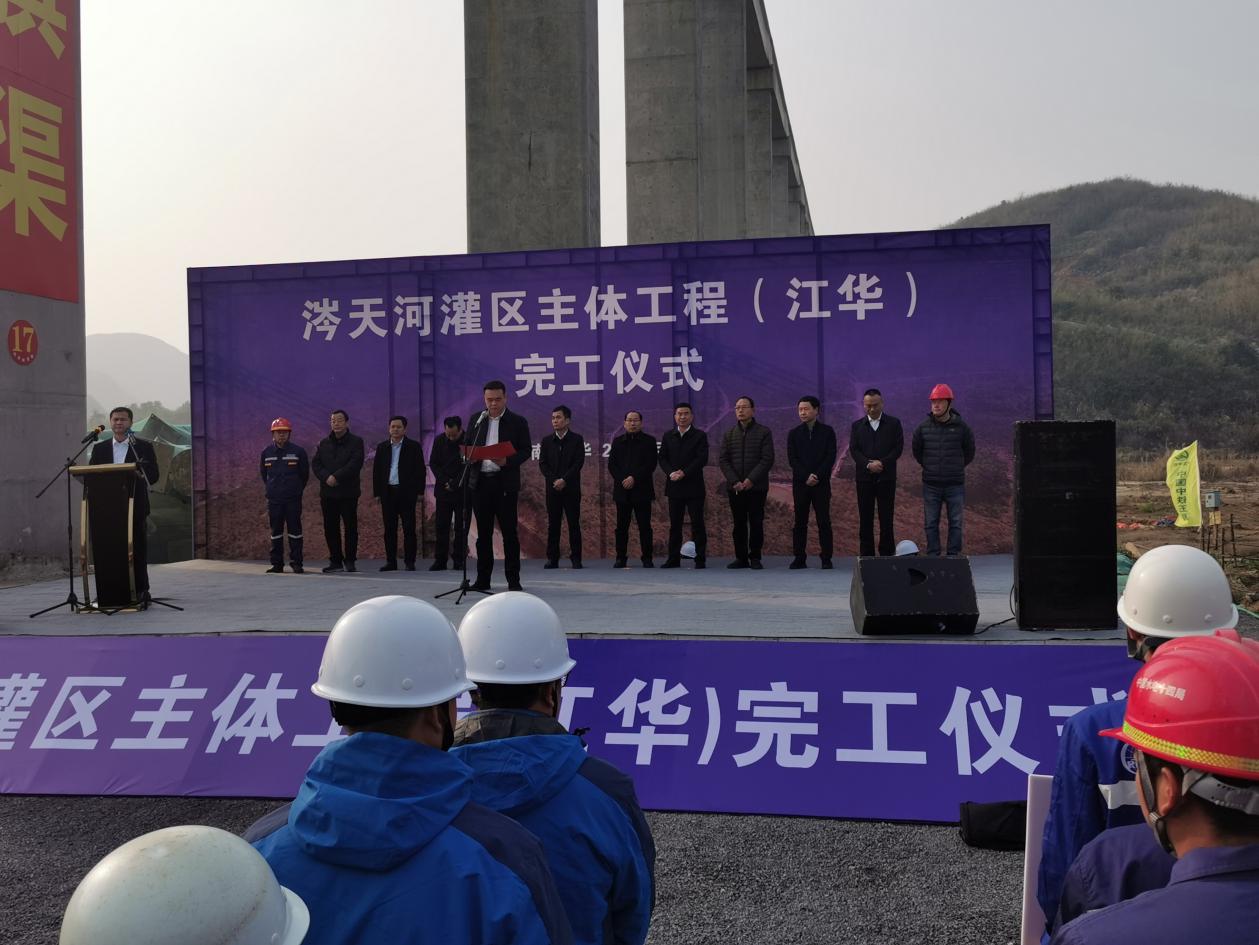 2月21日,永州市市政府、永州涔天河灌区工程建设有限责任环亚官方网站组织召开涔天河灌区(江华片区)主体工程完工仪式。永州市人民政府副市长吴恢才、江华县长吴军臣、涔天河灌区环亚官方网站董事长王振华、永州市水利局驻涔天河质监站、安监站、设计、监理、施工等参建单位代表参加。