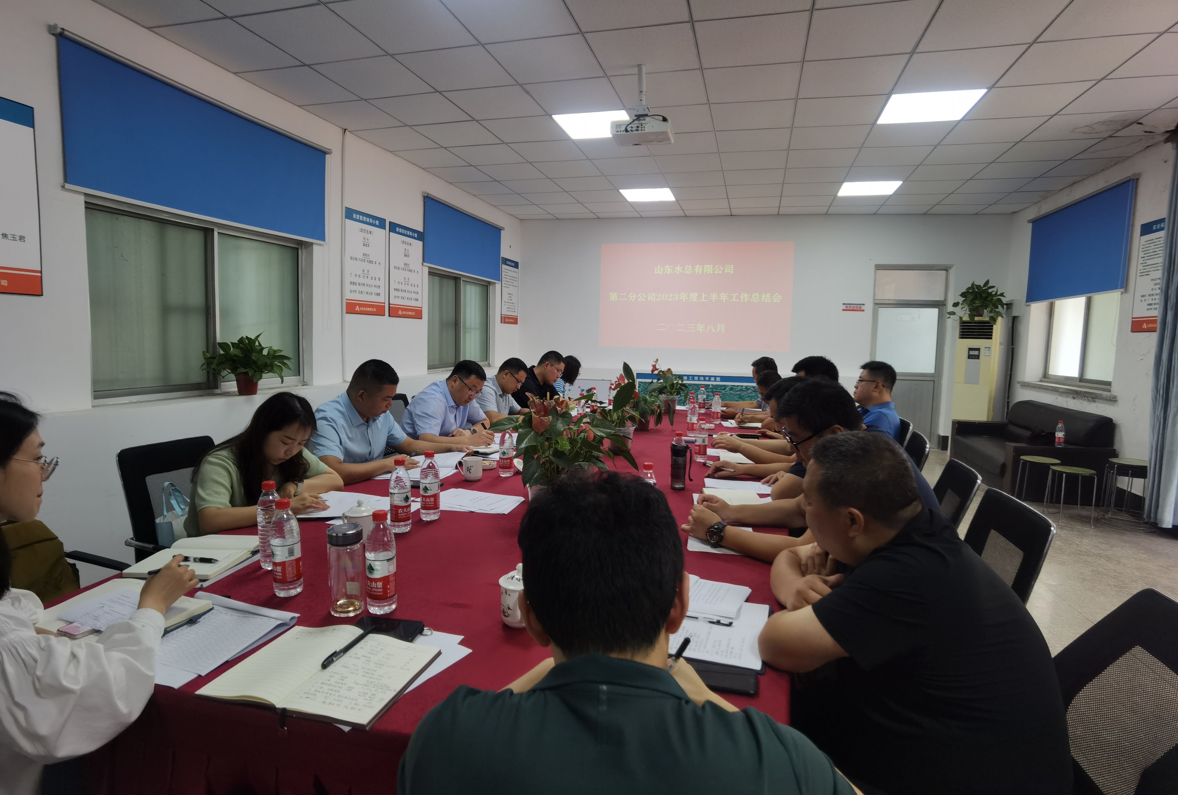 8月13日,第二分环亚官方网站在南水北调山东干线2022年防护网工程项目部召开2023年度上半年工作会议,会议号召全体职工勠力同心,铆足干劲,锐意进取,为完成全年目标任务作出贡献。会议由分环亚官方网站副总经理郝振超主持,领导班子、各科室负责人、各项目负责人、各项目机料和劳务专员参加会议。
