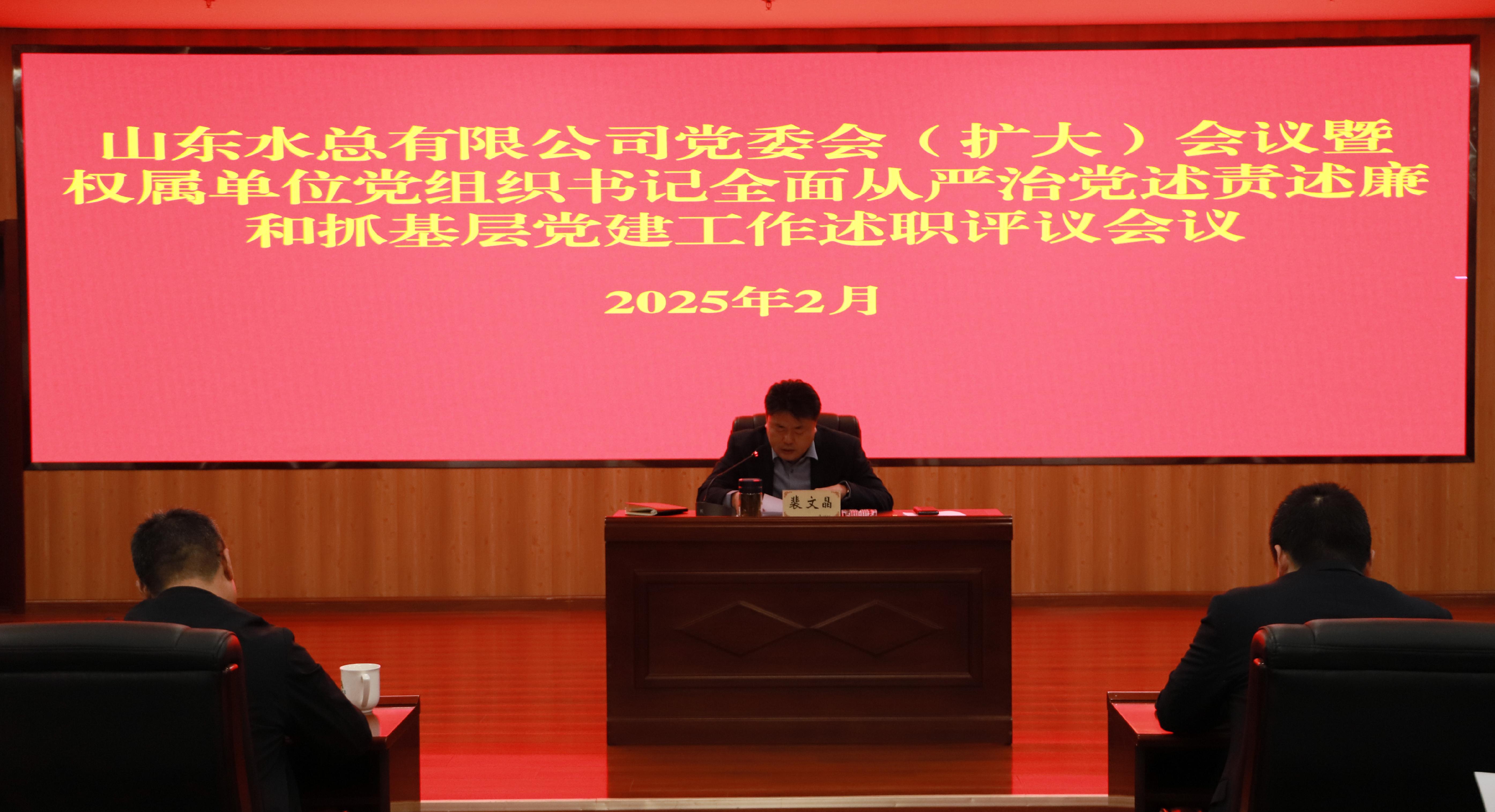 2月6日,环亚官方网站召开党委(扩大)会议,分别听取权属单位党支部书记2024年度全面从严治党述责述廉和抓基层党建工作述职,并进行现场评议。环亚官方网站党委书记、董事长裴文晶同志主持会议并讲话,环亚官方网站党委班子成员及高管、总部有关部室负责人及权属单位党组织书记和基层党员代表参会。