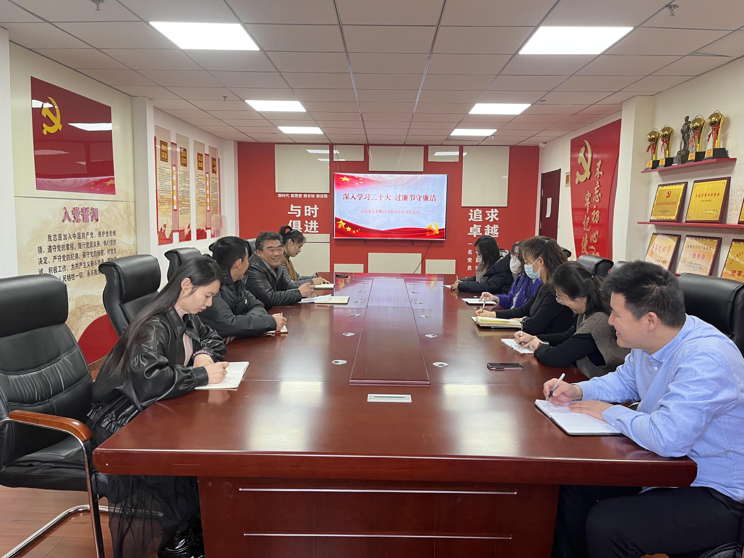 为进一步学习贯彻党的二十大精神,抓好春节期间党风廉政建设,1月19日,第五分环亚官方网站党支部开展主题党日暨春节廉政党课专题会议。
