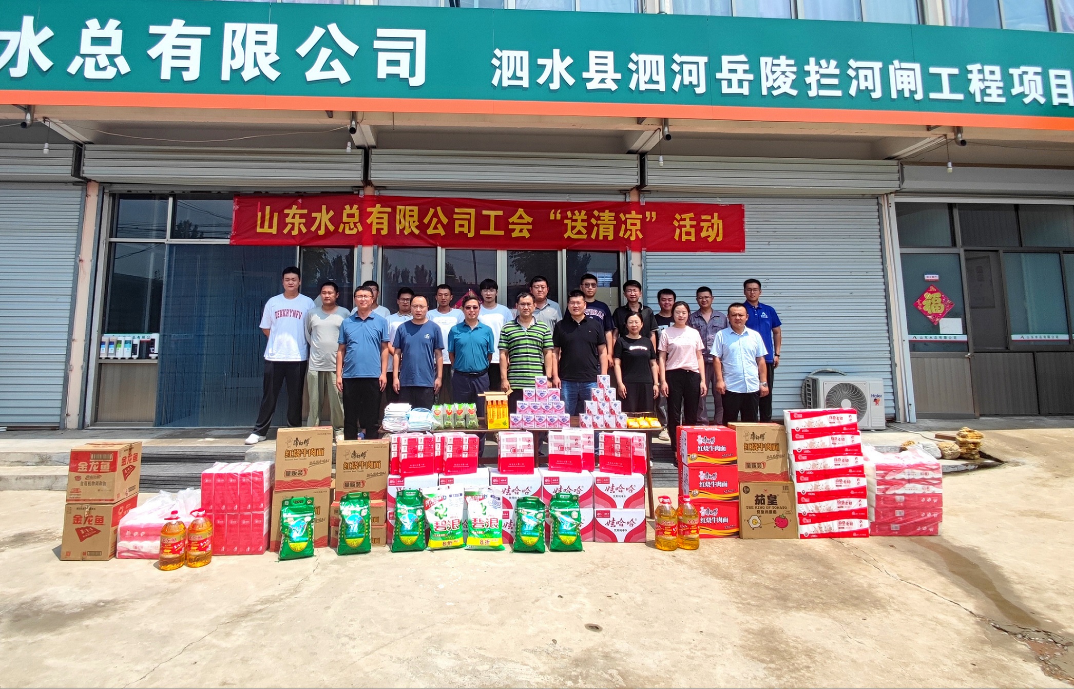 为深入学习贯彻落实习近平新时代中国特色社会主义思想,切实将环亚官方网站的关怀及时送到一线职工的心坎上。7月24日,环亚官方网站安全总监郭法文等一行人到第七分环亚官方网站泗水县泗河岳陵闸项目开展“送清凉”活动。