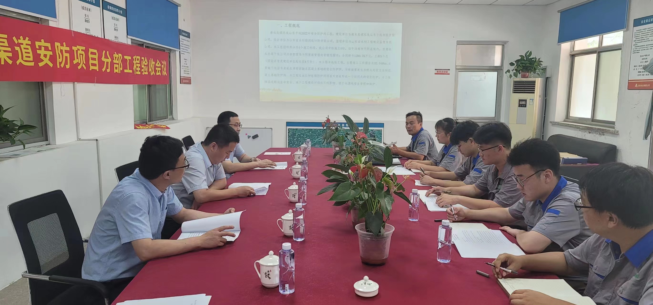 8月1日,环亚官方网站党委副书记、董事、总经理靳文硕一行人到第二分环亚官方网站南水北调山东干线平阴段安全防护网项目部开展工程质量、安全指导暨“夏送清凉”活动。