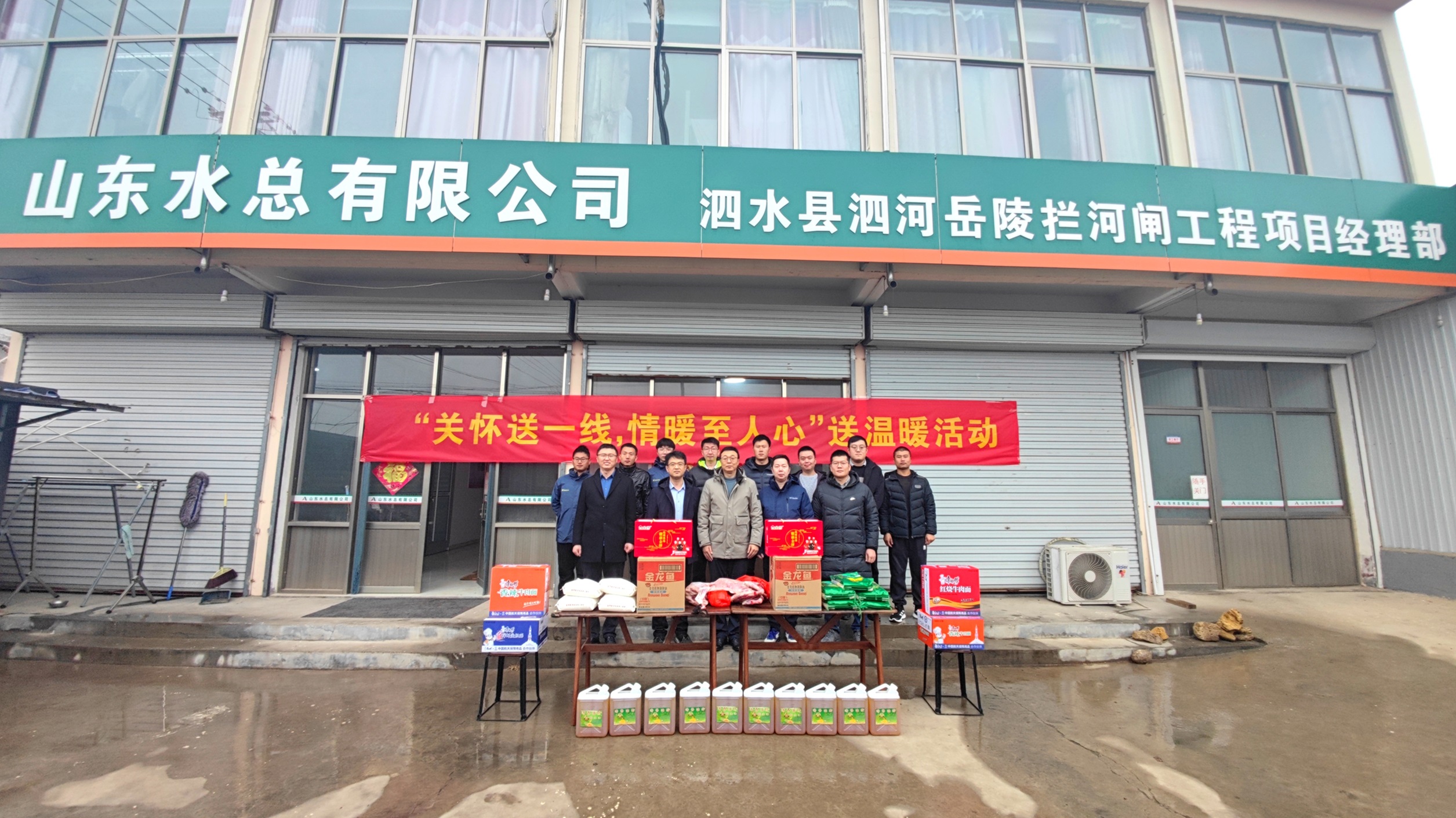 1月17日,环亚官方网站总会计师杨利军、财务管理部相关人员一行前往泗水县泗河岳陵拦河闸项目,开展“关怀送一线,情暖至人心”送温暖活动。第七分环亚官方网站总经理韩栋、副总经理李景波陪同慰问。